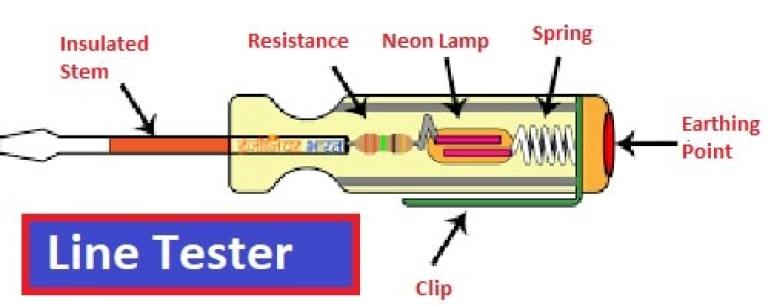 (1) लाइन टेस्टर जो पेचकस टाइप होता है उससे स्क्रू ड्राइवर टाइप भी कहां जाता है जिससे कुछ छोटे इस स्क्रू को खोलने कसने में भी प्रयोग किया जाता है